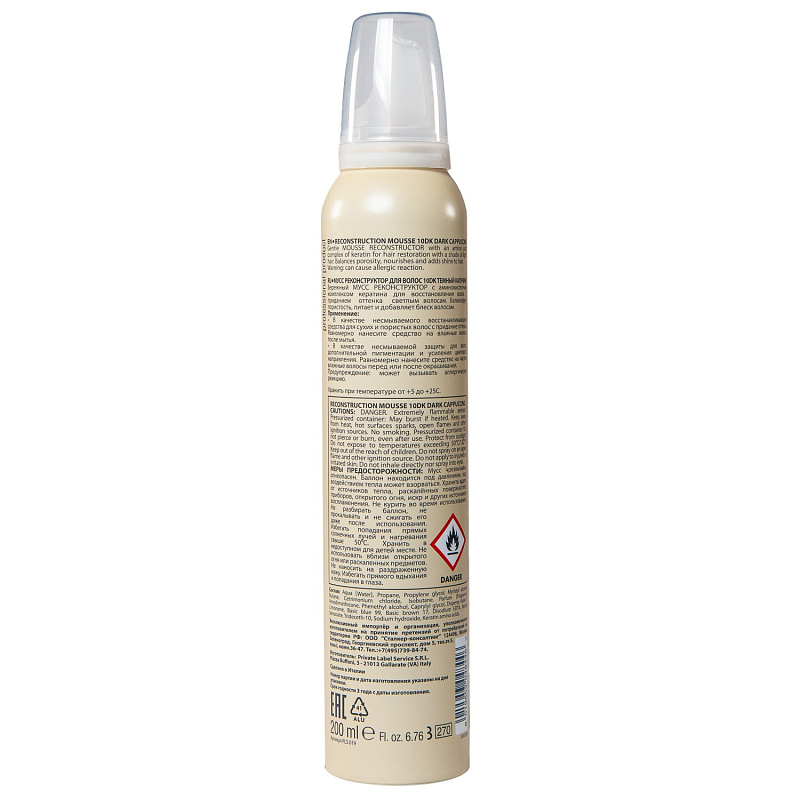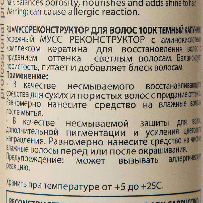 Мусс-реконструктор для волос Dark Cappuccino 10DK, Темный Капучино, 200 мл
