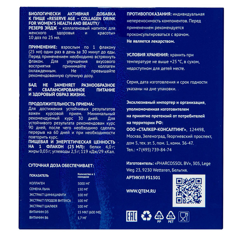 Коллагеновый напиток для женского здоровья и красоты Reserve Age, 10 флаконов х 25 мл