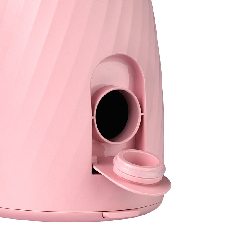 Конструкция прибора является разборной. Нижняя часть отсоединяется от основного блока с помощью кнопки. Это помогает производить внутреннюю очистку прибора от известкового налета. А заливается вода в ирригатор через специальное боковое отверстие.