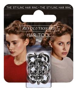 Черная резинка для волос Nano True Black Clear от компании Invisibobble, изготовленная из искусственной смолы — это аксессуар, который будет полезен для любой девушки с длинными волосами. Резинку можно использовать в качестве стильного браслета или закреплять ей волосы в разнообразных прическах. Благодаря эластичности материала вы можете одним движением снять резинку, не повреждая волосы. В результате регулярного использования резинки не образуется секущихся кончиков, волосы остаются такими же ухоженными. Внутренний диаметр аксессуара составляет примерно 3 миллиметра, благодаря эластичности изделия его можно использовать на густых волосах