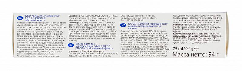 Рокс Зубная паста SENSITIVE Мгновенный эффект 94 гр