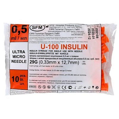 шкале U-100, объем 0,5 мл, размер иглы 29G. Безболезненность инъекции