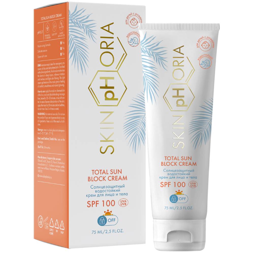 Солнцезащитный водостойкий крем для лица и тела SPF100 Total Sun Block Cream 0+, 75 мл