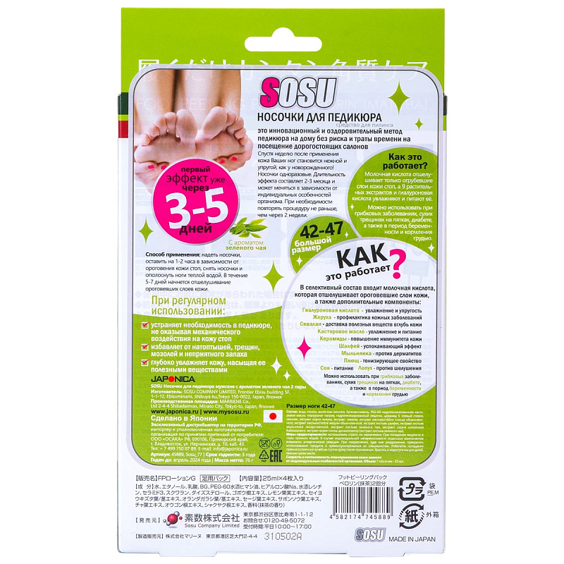 Носочки для педикюра мужские с ароматом зеленого чая, 2 пары