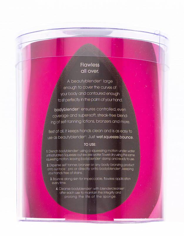 Перед использованием смочите bodyblender водой и промокните полотенцем. Затем лёгкими похлопывающими движениями с помощью спонжа нанесите на кожу косметическое средство. После использования спонжа очистите его с помощью специальных средств blendercleanser. Оставьте спонж высохнуть естественным путём в сухом проветриваемом месте.