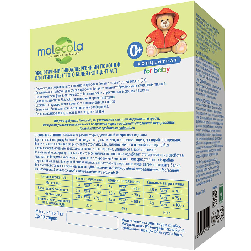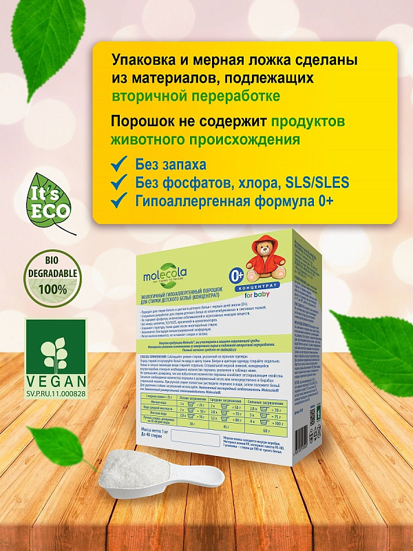 Стиральный порошок (концентрат) для стирки детского белья, гипоаллергенный, экологичный, 1000 грПричина уценки: