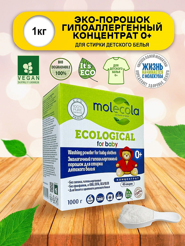 Стиральный порошок (концентрат) для стирки детского белья, гипоаллергенный, экологичный, 1000 гр