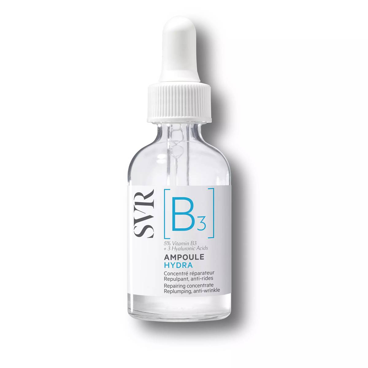 Ампула [B3] Гидра – сыворотка с высокой концентрацией витамина В3 успокаивает и повышает упругость кожи. В сочетание с тремя видами гиалуроновой кислоты (средней, высокой и очень высокой) интенсивно увлажняет кожу и удерживает влагу в слоях эпидермисе.