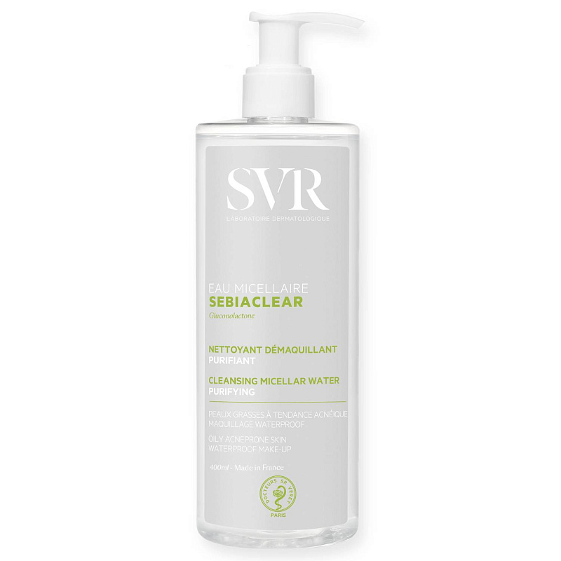 Нанесите SVR Sebiaclear Eau Micellaire на косметический диск и аккуратно удалите макияж с лица и контура глаз.