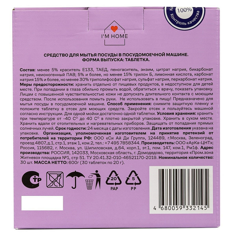 Таблетки для посудомоечных машин «Детка, отдыхай», 30 шт