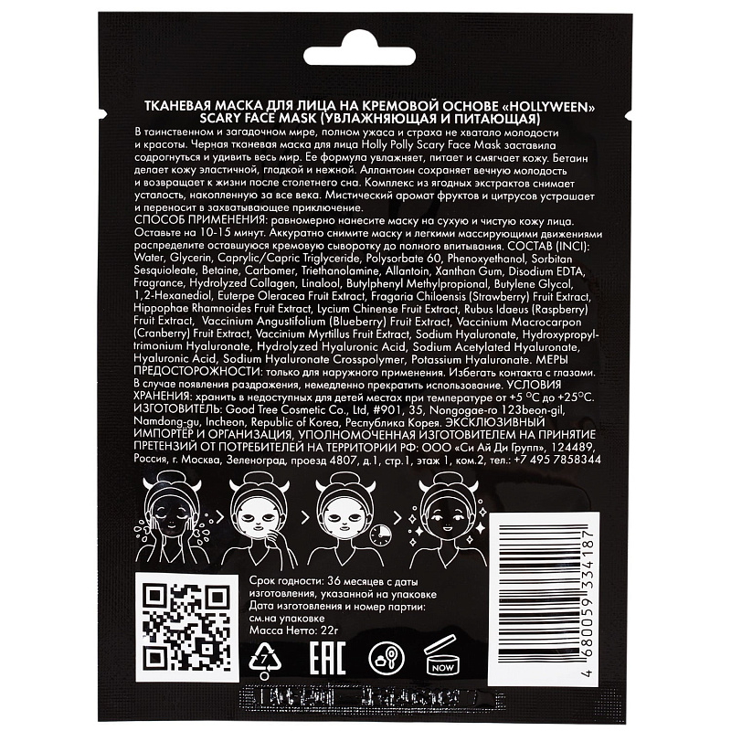 Увлажняющая и питающая тканевая маска для лица Scary Face Mask на кремовой основе, 22 гр