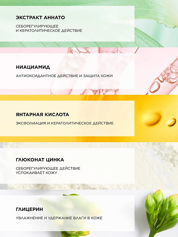 Корректирует несовершенства кожи, восстанавливает гладкость