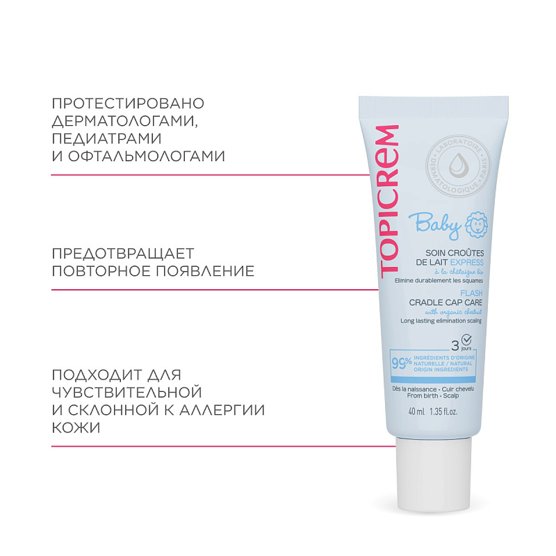 Наносить 1 раз в день на молочные корочки легкими массирующими движениями, оставить на 15 минут, затем смыть чистой водой.