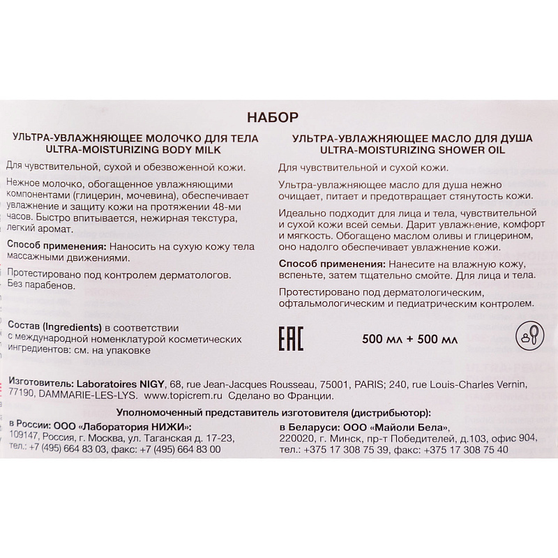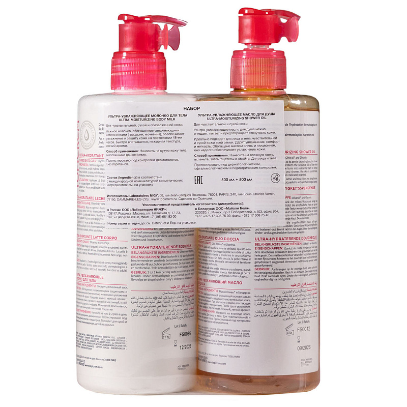 Набор: ультра-увлажняющее молочко для тела 500 мл + ультра-увлажняющее масло для душа 500 мл