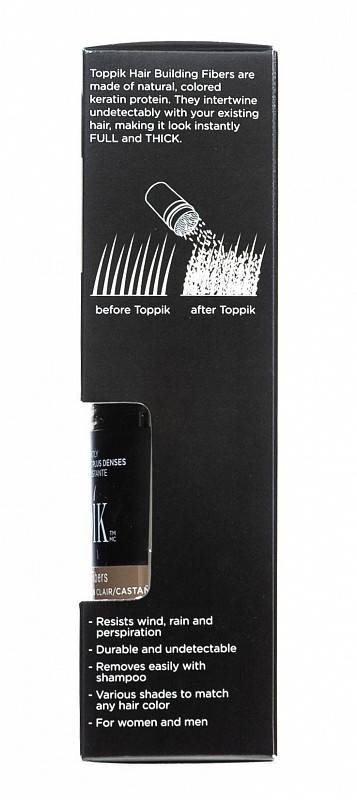 Загуститель для волос Toppik – это косметическая пудра для мужчин и женщин, которая помогает маскировать залысины и добавлять объем истонченным волосам. Пудра для объема волос легко наносится, не осыпается и практически незаметна на волосах. Средство подходит для любых типов волос – седых или проблемных, а также при окрашивании или в сочетании с другими косметическими средствами.