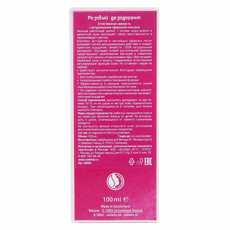 Спирт, Вода, Ароматизатор, Экстракт дамасской розы, Экстракт лепестков шиповника, Глицерин, Глицирризиновая к-та, Лимонен, Линалоол, Цитронеллол, Бензиловый спирт, Бензилбензоат, Бензилсалицилат, Гераниол, Цитраль, Эвгенол, Фарнезол