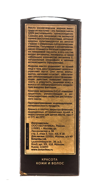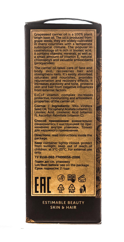 Косметическое натуральное масло 100% Виноградных косточек 30 мл