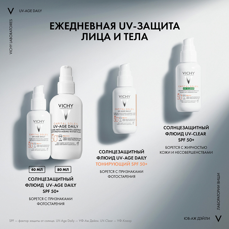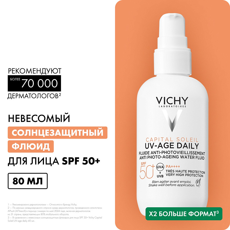 Невесомый солнцезащитный флюид для лица против признаков фотостарения UV-Age Daily SPF 50+, 80 мл