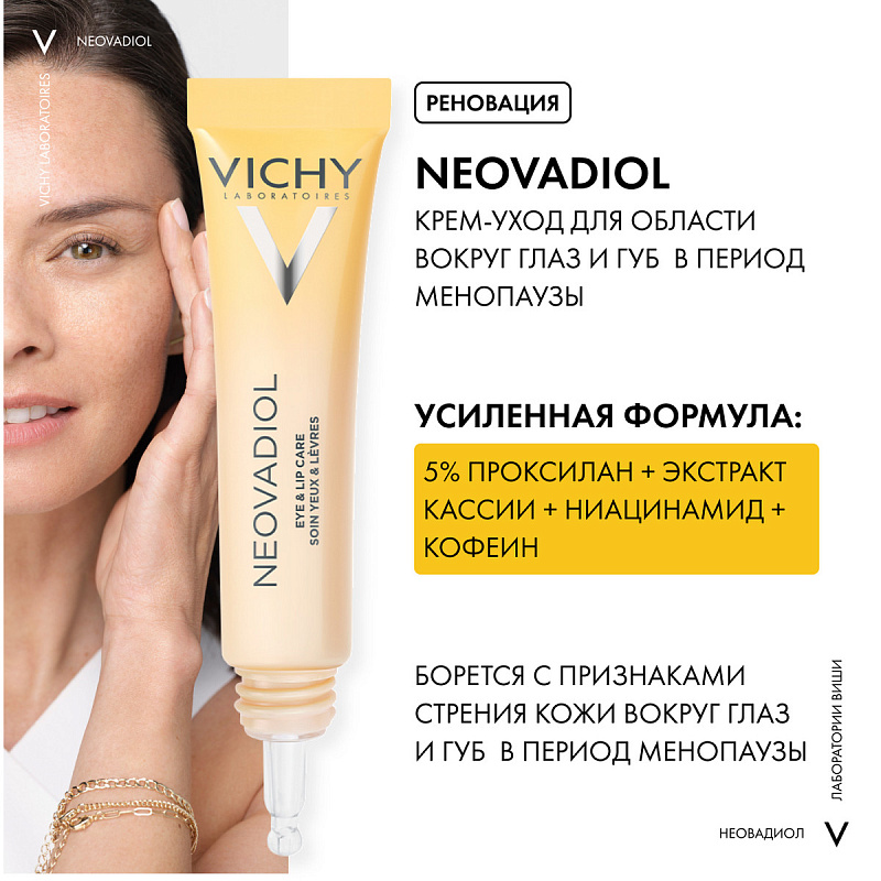 Антивозрастной крем для контура глаз и губ против менопаузального старения кожи, 15 мл