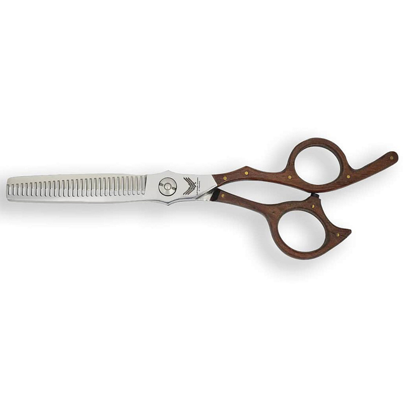 6,3 дюйма, грецкий орех Ножницы для стрижки из стали VG-10 с 30 прямыми зубьями. Скорость разбавления составляет от 25% до 30%. Кованый хвостовик вместе с рукояткой Off-Set гарантирует более удобное положение локтя. В качестве механизма используется Ball Bearing, в котором установлен точный и мягкий подшипник из микросфер, обеспечивающий комфорт во время использования. Рукоять из настоящего дерева.