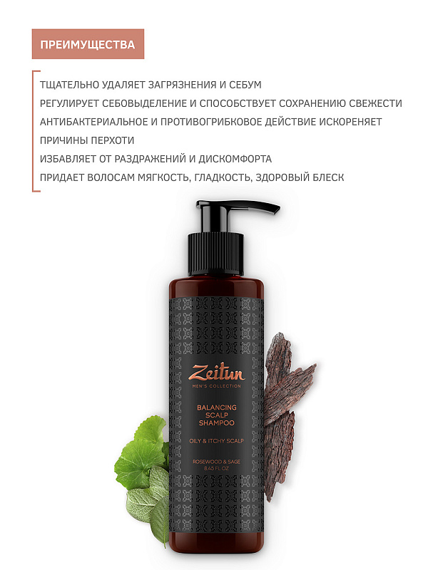 Балансирующий шампунь от перхоти с шалфеем и розовым деревом для мужчин, 250 мл