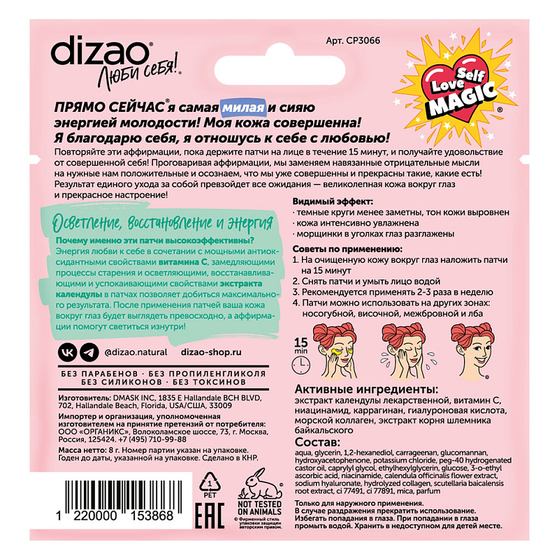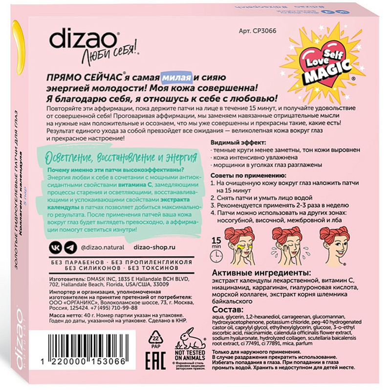 Золотые гидрогелевые патчи для глаз "Коллаген и календула", 1 пара