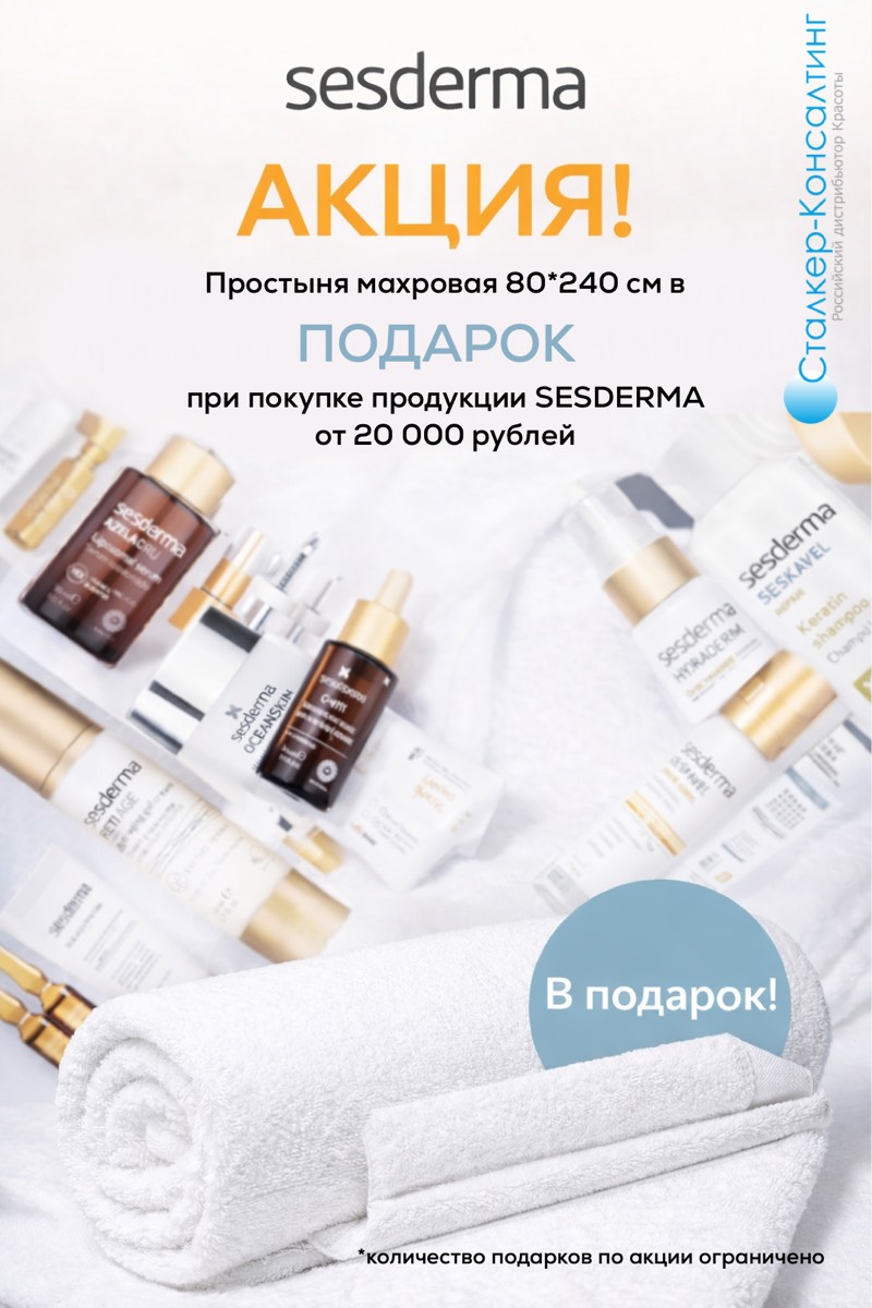 При покупке препаратов SESDERMA от 20000 рублей - Махровая простынь 80x240 см в ПОДАРОК!