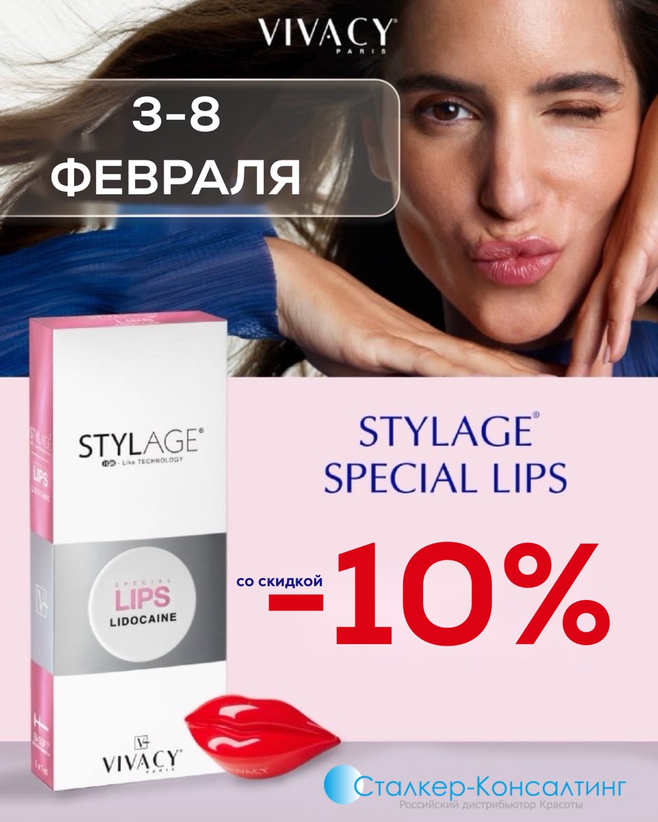 Только с 3 по 8 февраля для вас действует скидка 10% на препарат Stylage Spesial Lips
